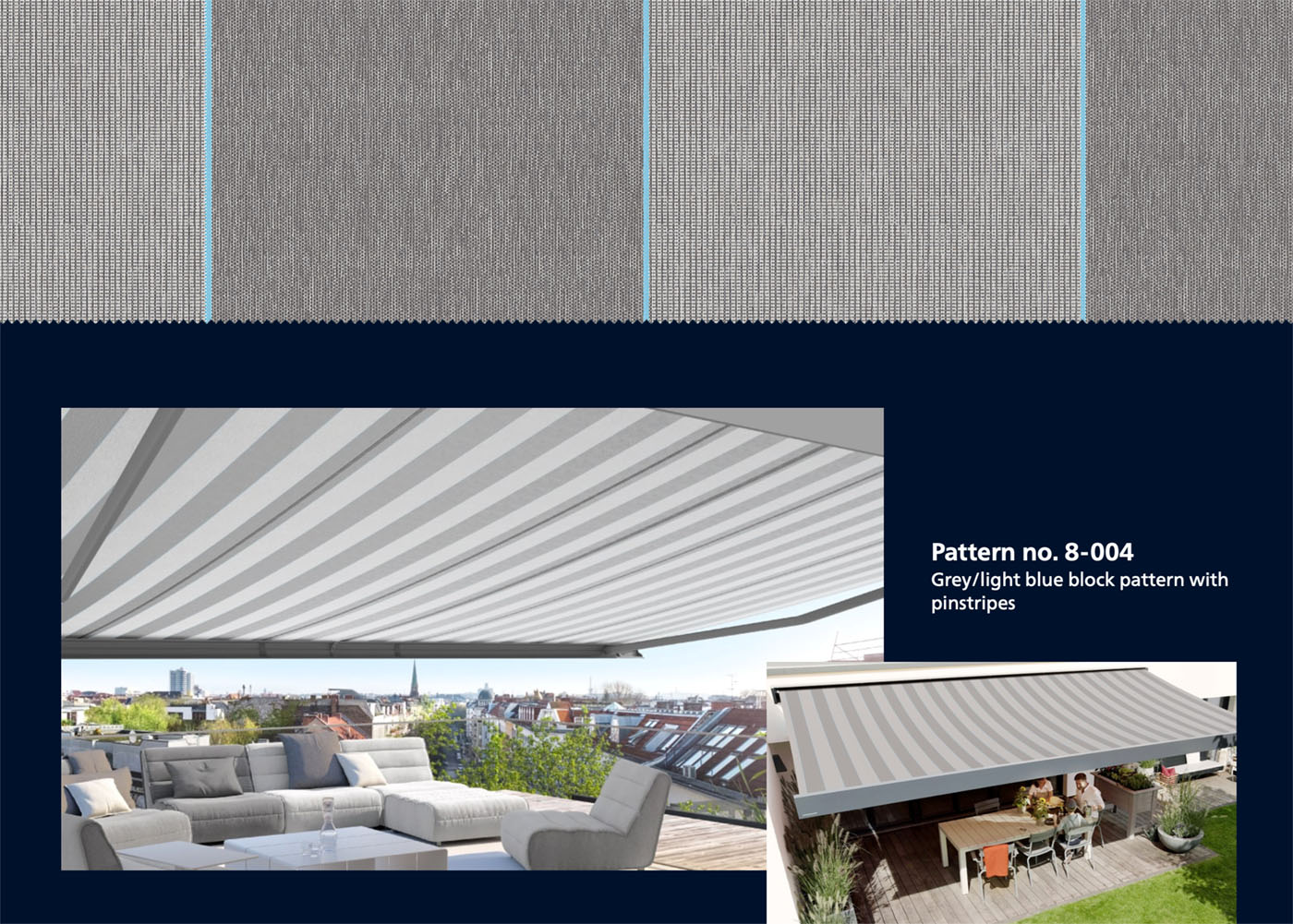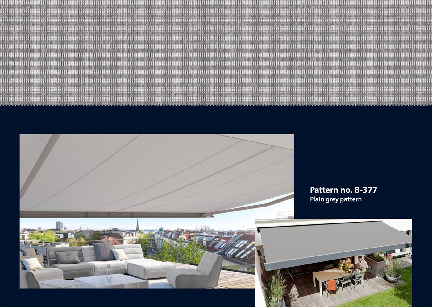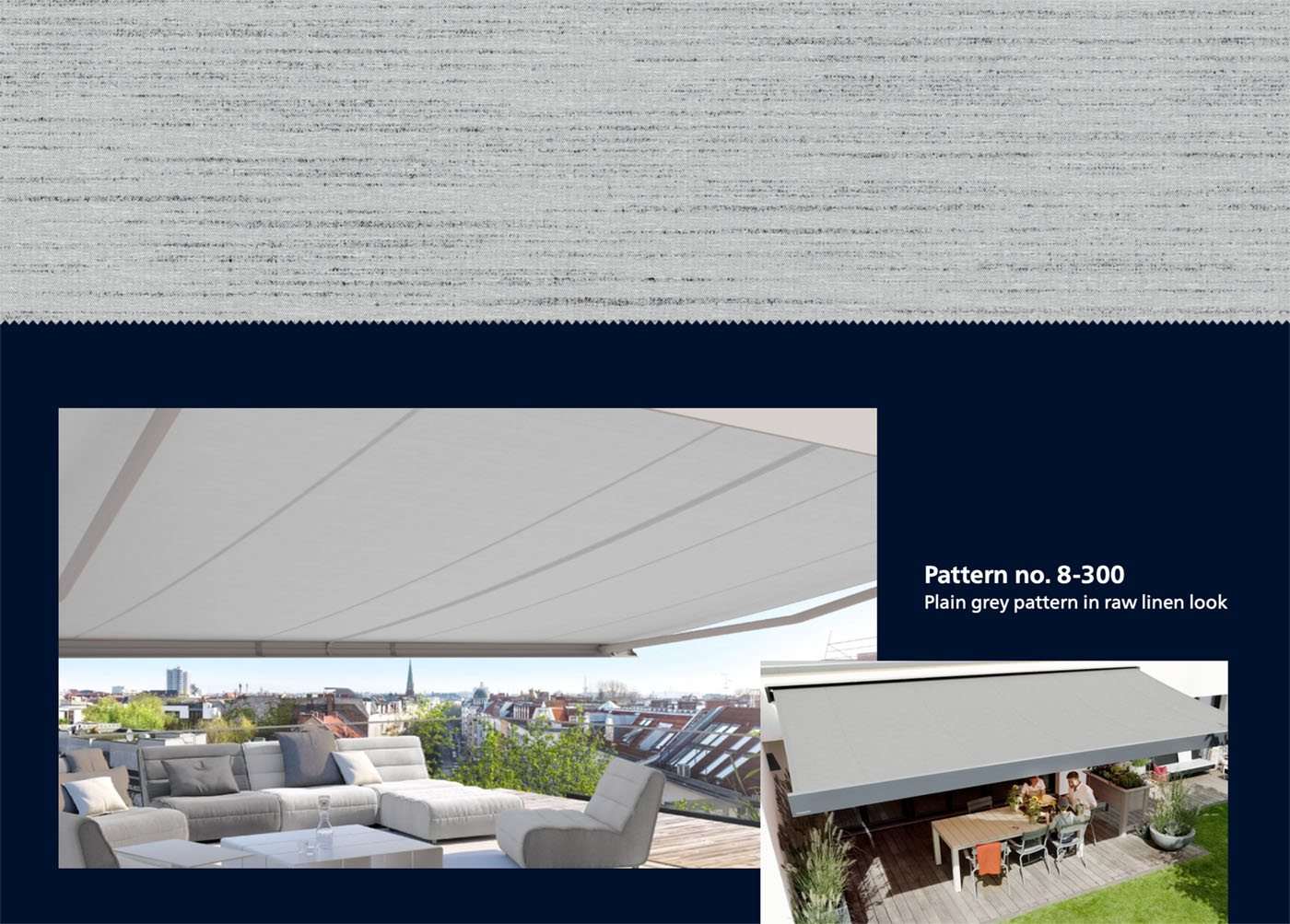 The modern basics blue® fabric collection is as sophisticated as you are. Look forward to beautiful awning covers in modern design and with unique quality – for the best outdoor living in your precious personal space.