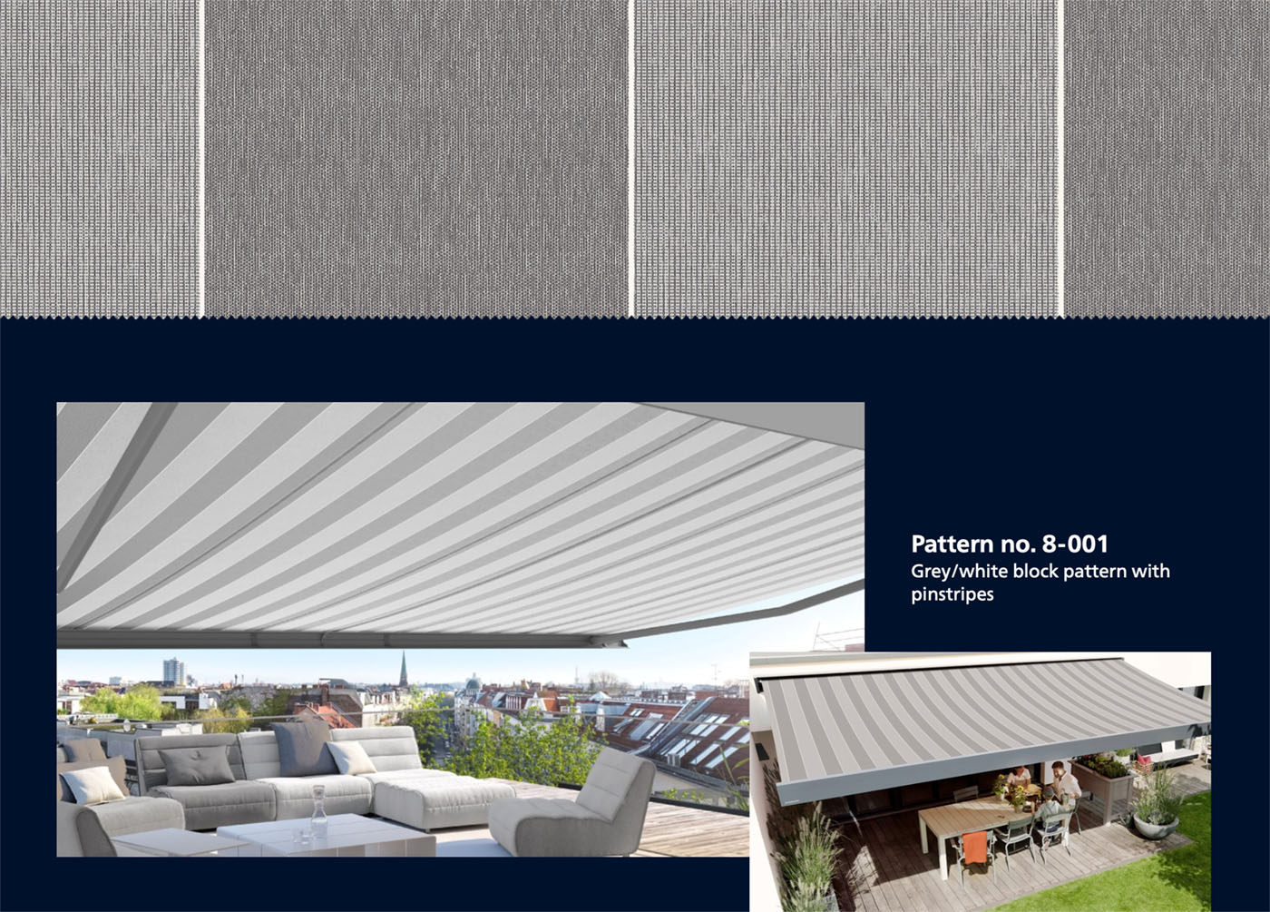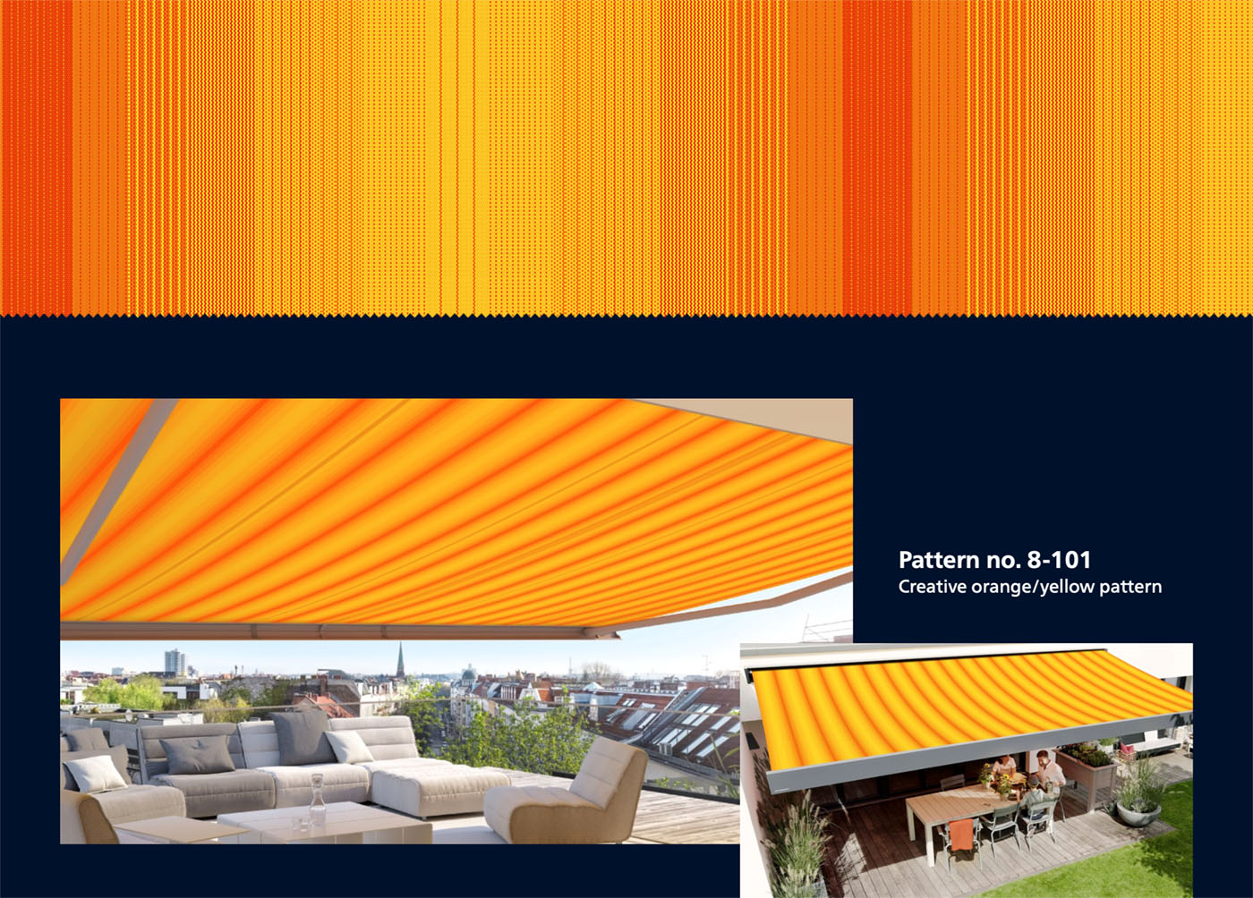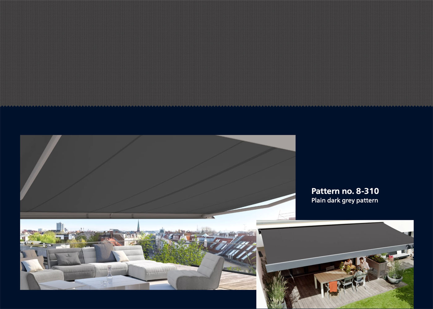 The modern basics blue® fabric collection is as sophisticated as you are. Look forward to beautiful awning covers in modern design and with unique quality – for the best outdoor living in your precious personal space.