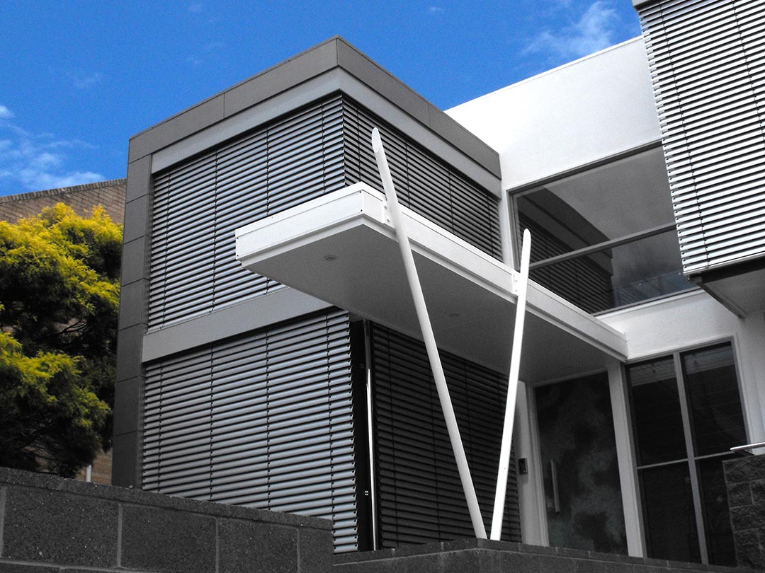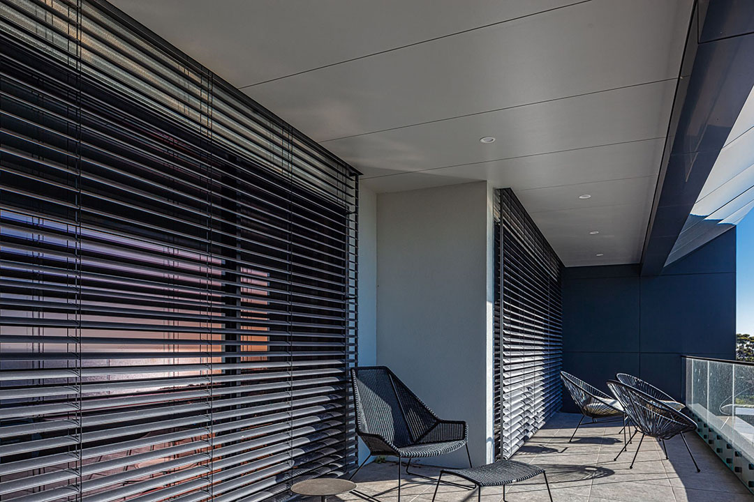 The external louvre has evolved as the most versatile and efficient form of controlling the effects of the sun. Retractable louvres are now available in a 60 or 94 mm interlocking profile to create a blackout effect for audio-visual areas. Where stacking depth is limited a simplified form without a rolled edge is available. This ‘flat’ blade (60, 80 or 100 mm slats) is also suitable for internal situations where a larger scaled blade suits the design.